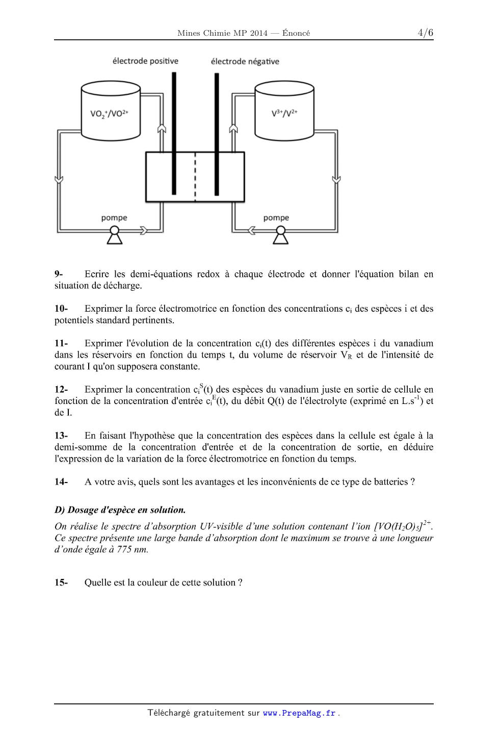 9- Ecrire les demi--équations redox à chaque électrode et donner l'équation