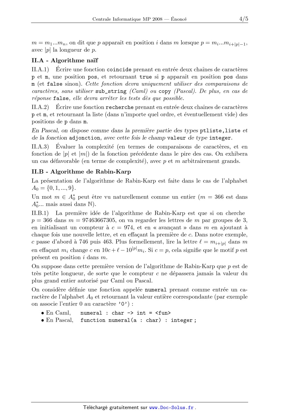 Caml/Pascal) du motif dans le mot. Dans l'exemple precedent, les programmes