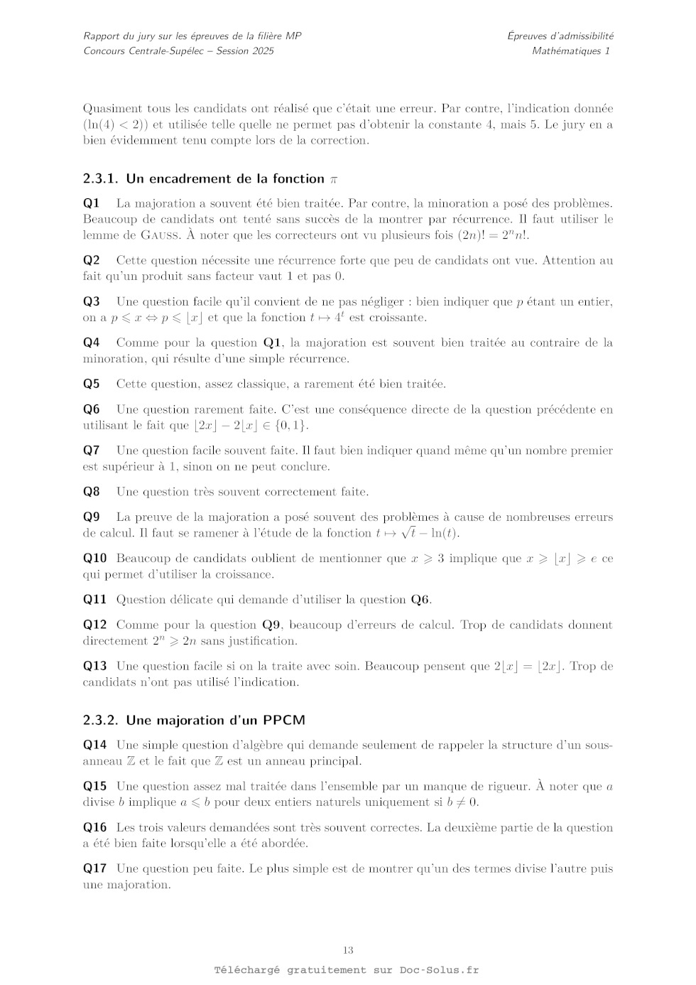 Q13. Soit x 3. Montrer que