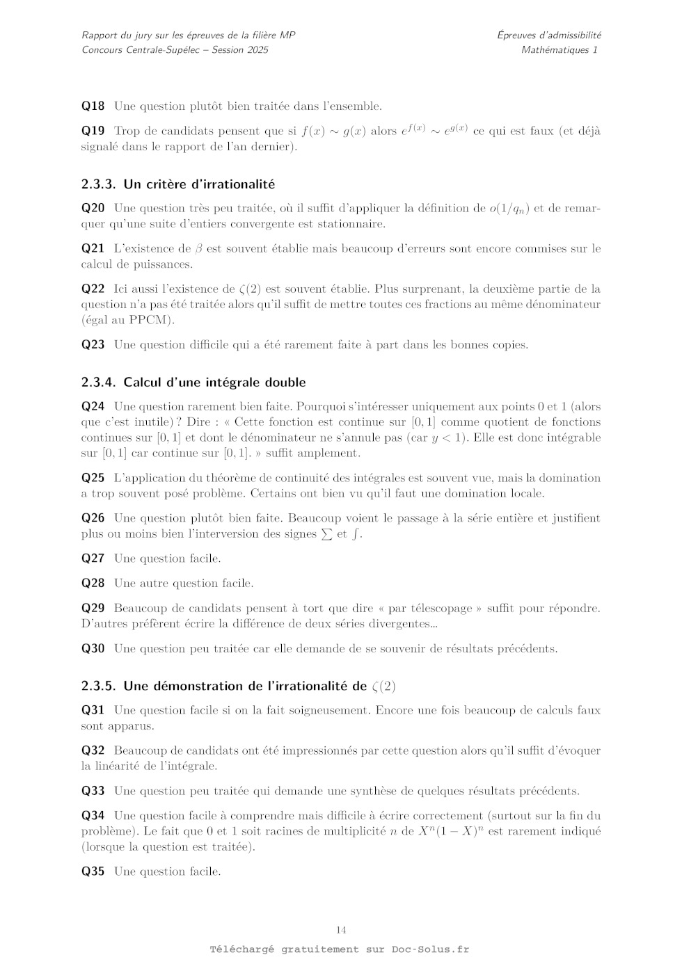 Partie C Un critère d'irrationalité
