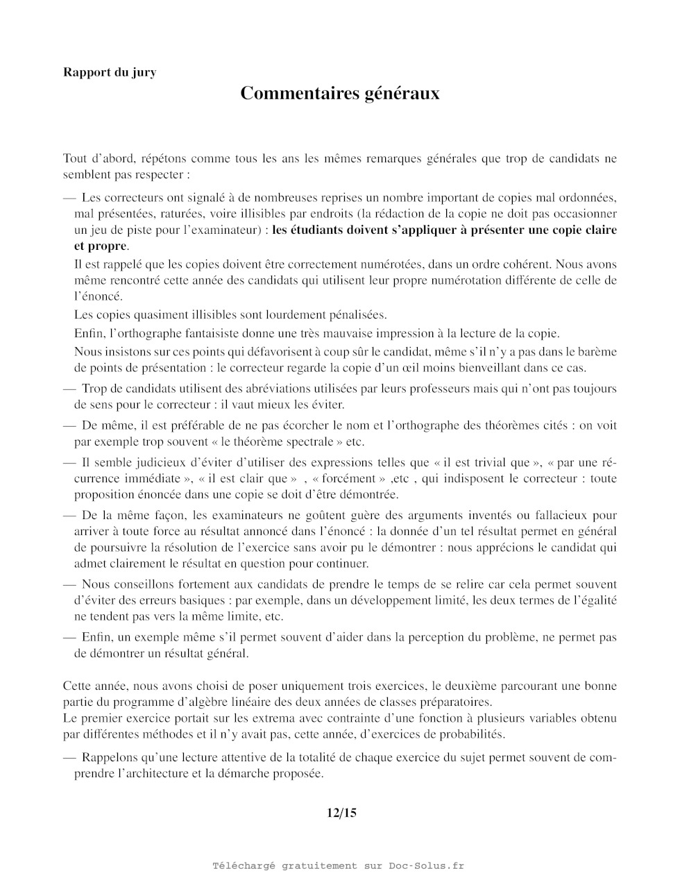 N.B. : le candidat attachera la plus grande importance à la clarté, à la