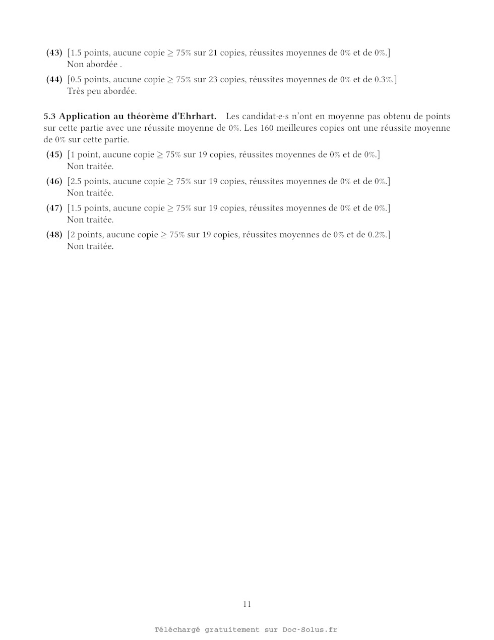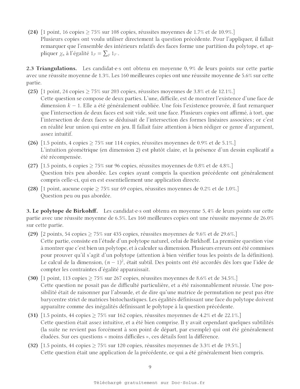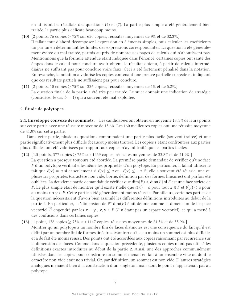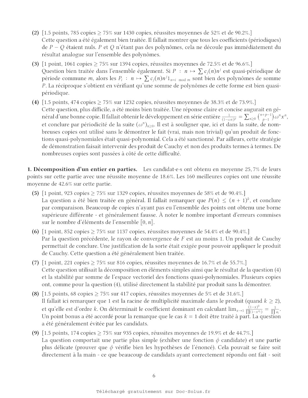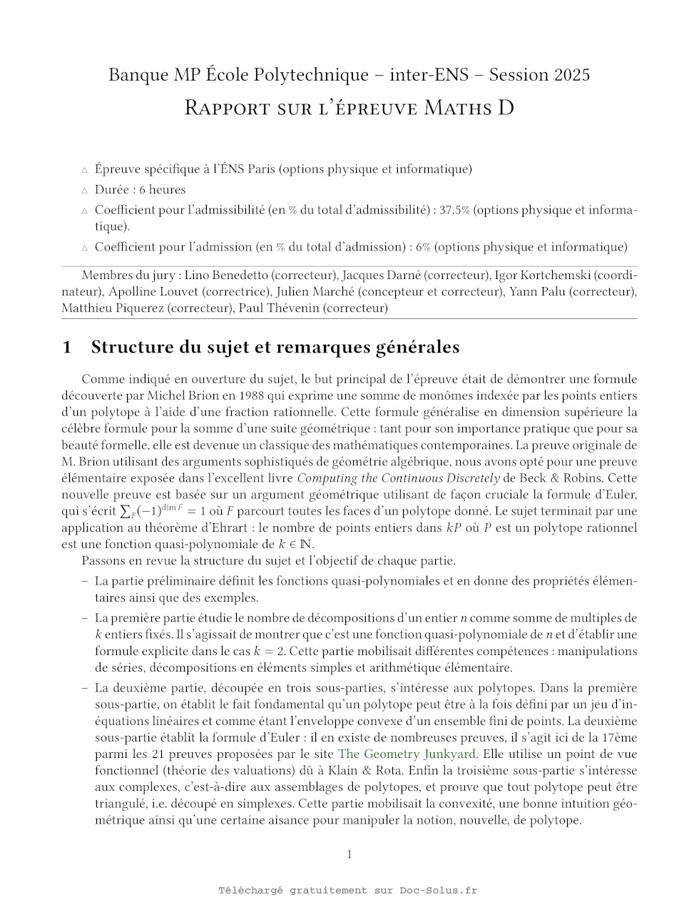 l'égalité 5 r° = 2 où m < n sont deux entiers, découverte par Michel Brion en 1988. d 1-z i=m XX *X Le problème comprend une partie préliminaire, puis 5 parties numérotées de 1 à 5. Les parties 1 et 2 sont indépendantes entre elles. La partie 3 repose sur des notions et sur des résultats de la partie 2. La partie 4 est indépendante des parties précédentes. À tout moment il est possible d'admettre le résultat d'une question et de l'utiliser ultérieurement, à condition de l'indiquer clairement. Le sujet est long et comporte des questions délicates : il est tout à fait normal de bloquer sur des questions et il est possible de réussir l'épreuve sans traiter une part substantielle du sujet. La clarté, la concision et la précision de la rédaction seront prises en compte dans la notation. Notations On note N = {0,1,2,...} l'ensemble des entiers positifs ou nuls et N° = {1,2,3,...} l'ensemble des entiers strictement positifs. On note Z l'ensemble des entiers relatifs, R l'en- semble des nombres réels et EUR l'ensemble des nombres complexes. Pour un ensemble À on note Card À son cardinal. Lorsque n > 1 est un nombre entier, on note (:,:) le produit scalaire canonique dans R".