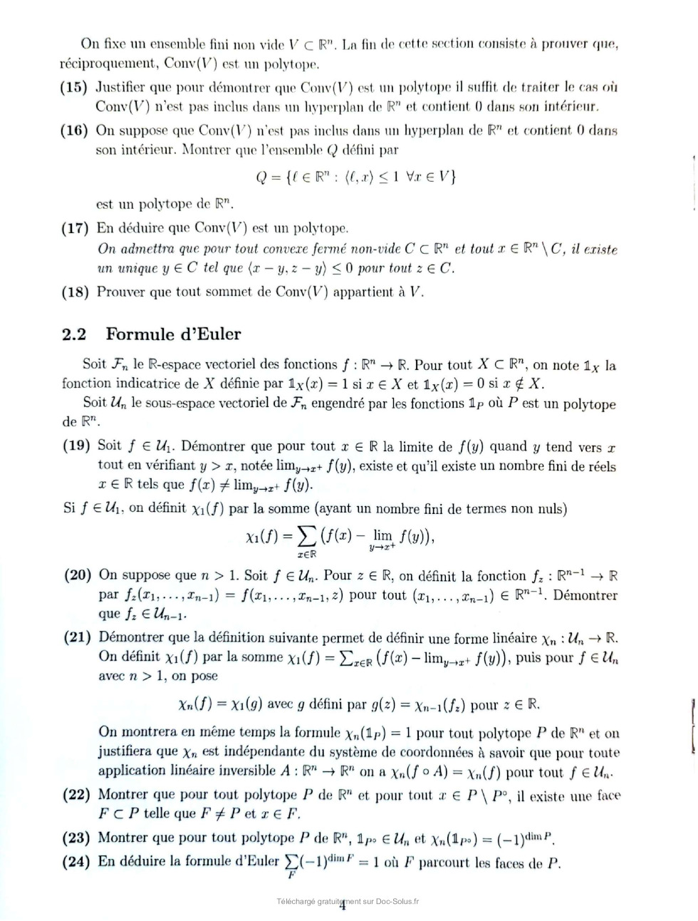 (24) En déduire la formule d'Euler 5[(--1)%"# = 1 où F parcourt les faces de P.