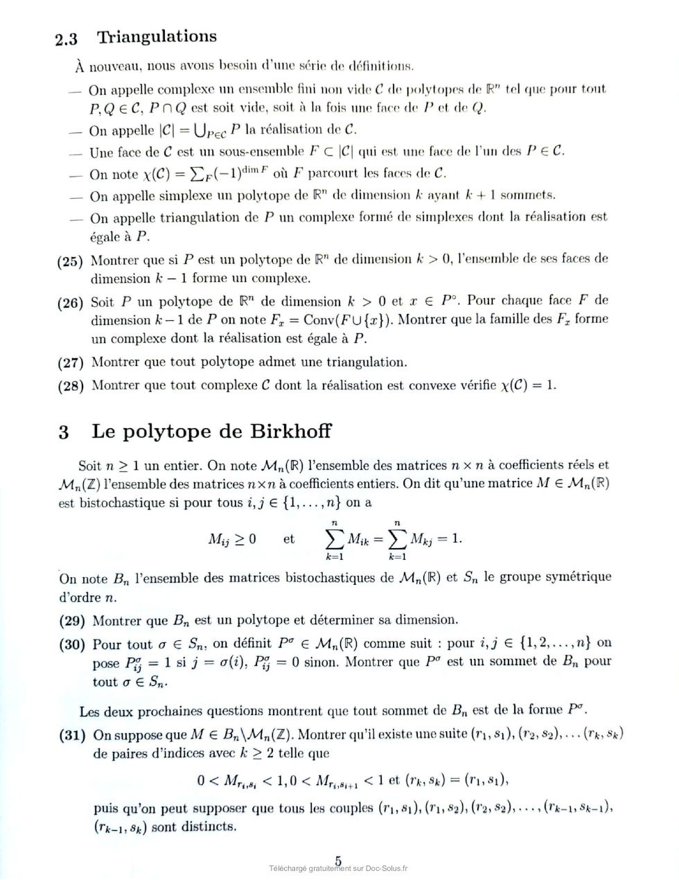 (29) Montrer que B, est un polytope et déterminer sa dimension.