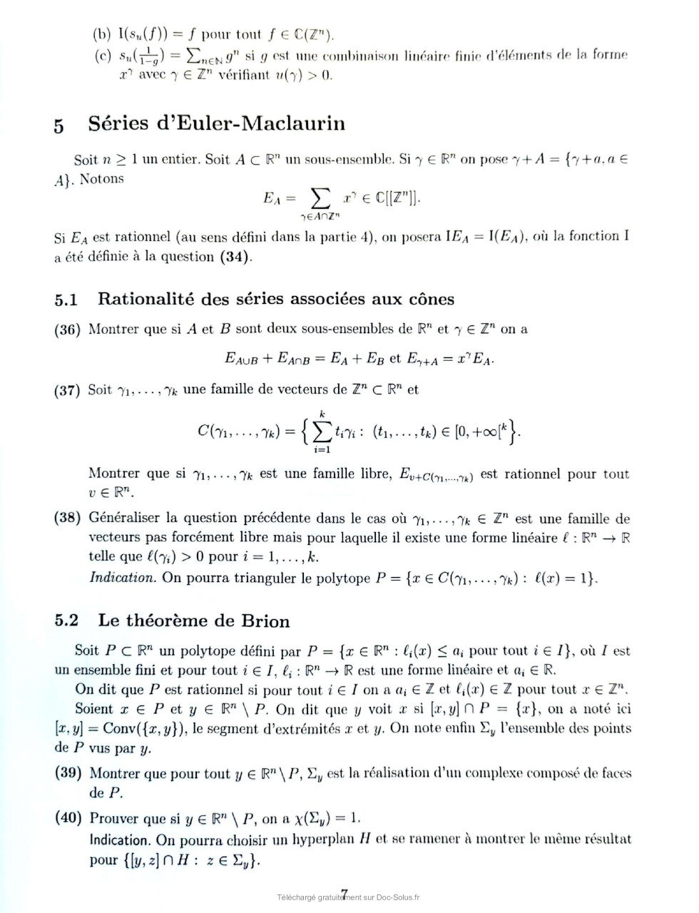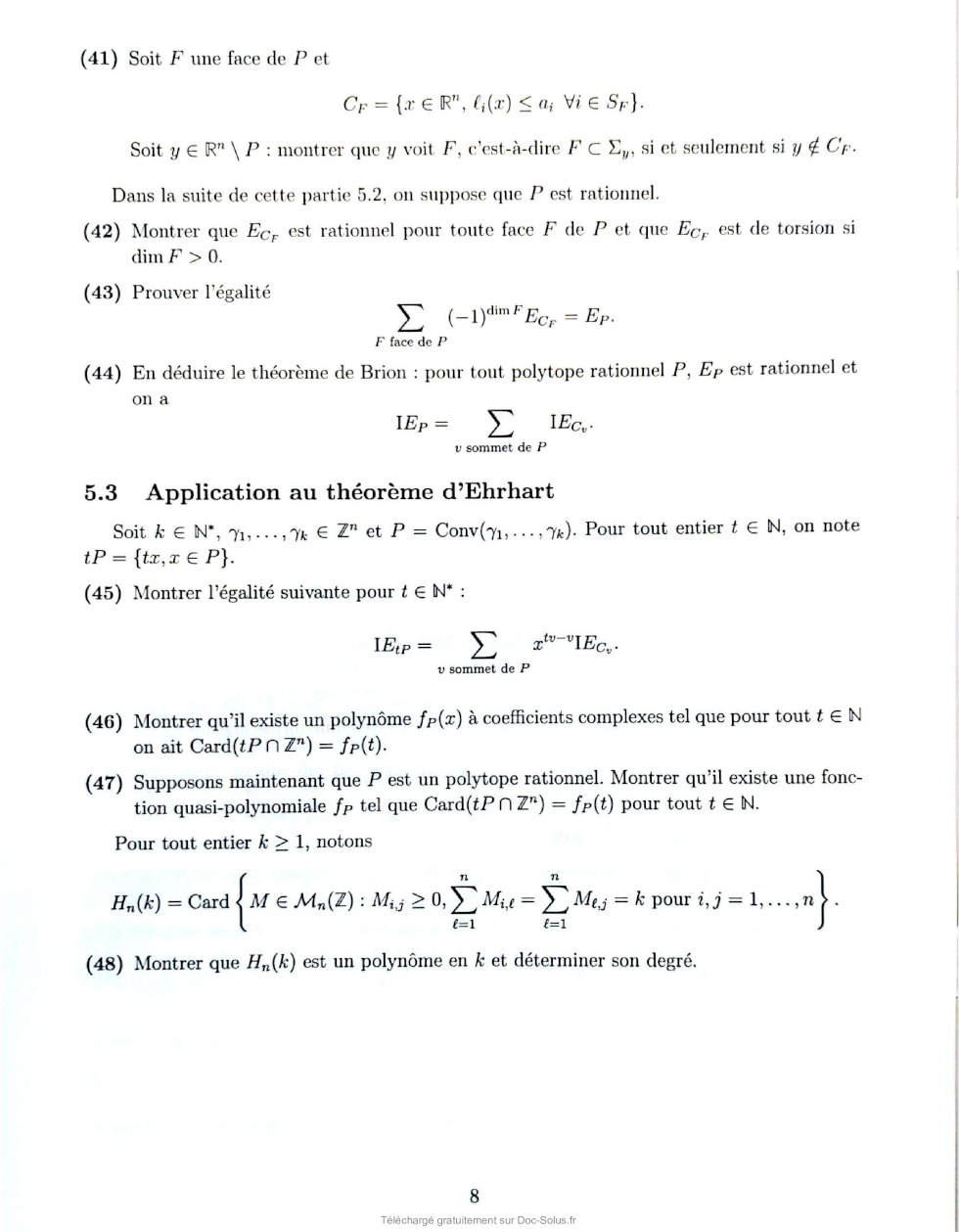 (44) En déduire le théorème de Brion : pour tout polytope rationnel P, EP est rationnel et