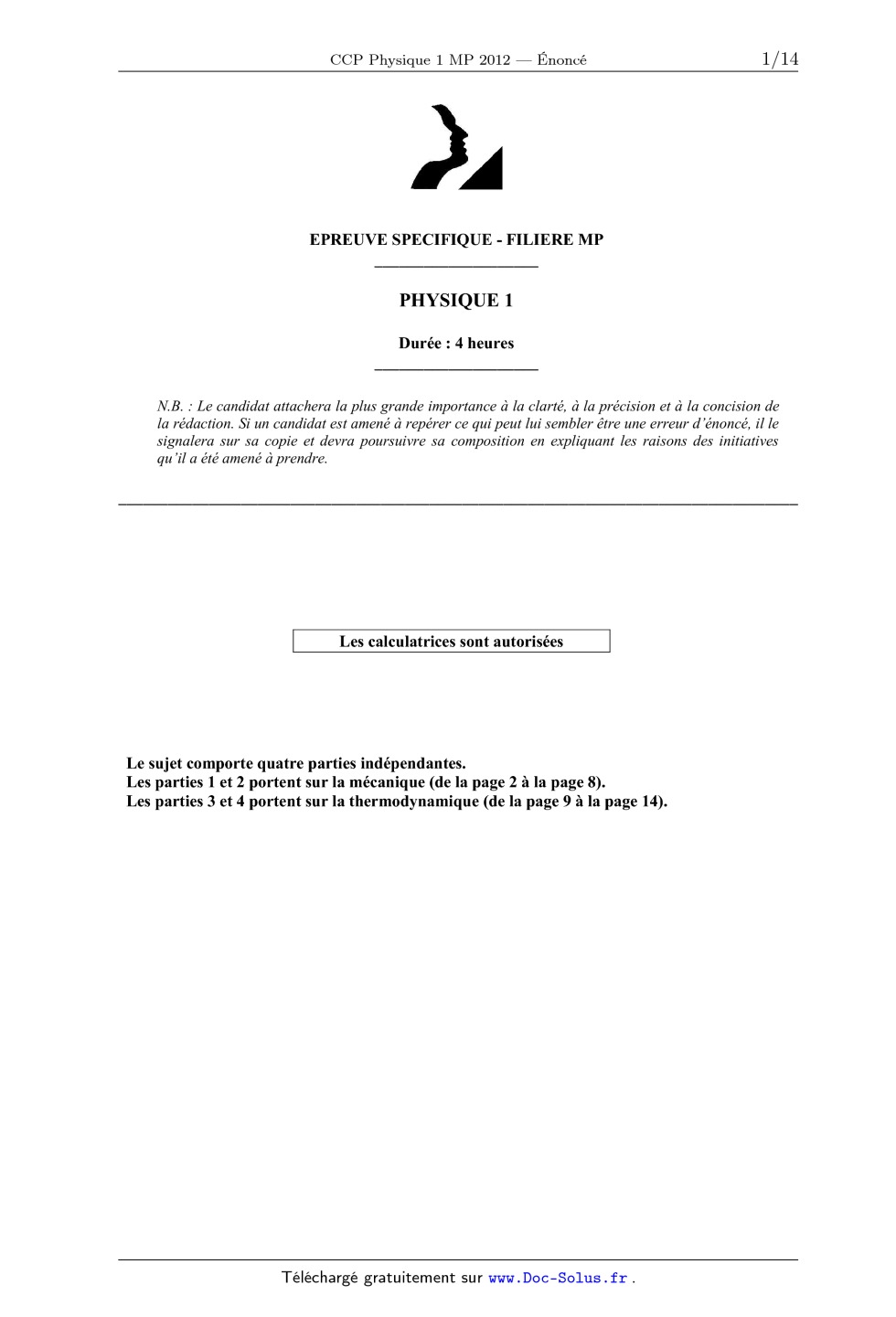 Les parties 1 et 2 portent sur la mécanique (de la page 2 à la page 8).