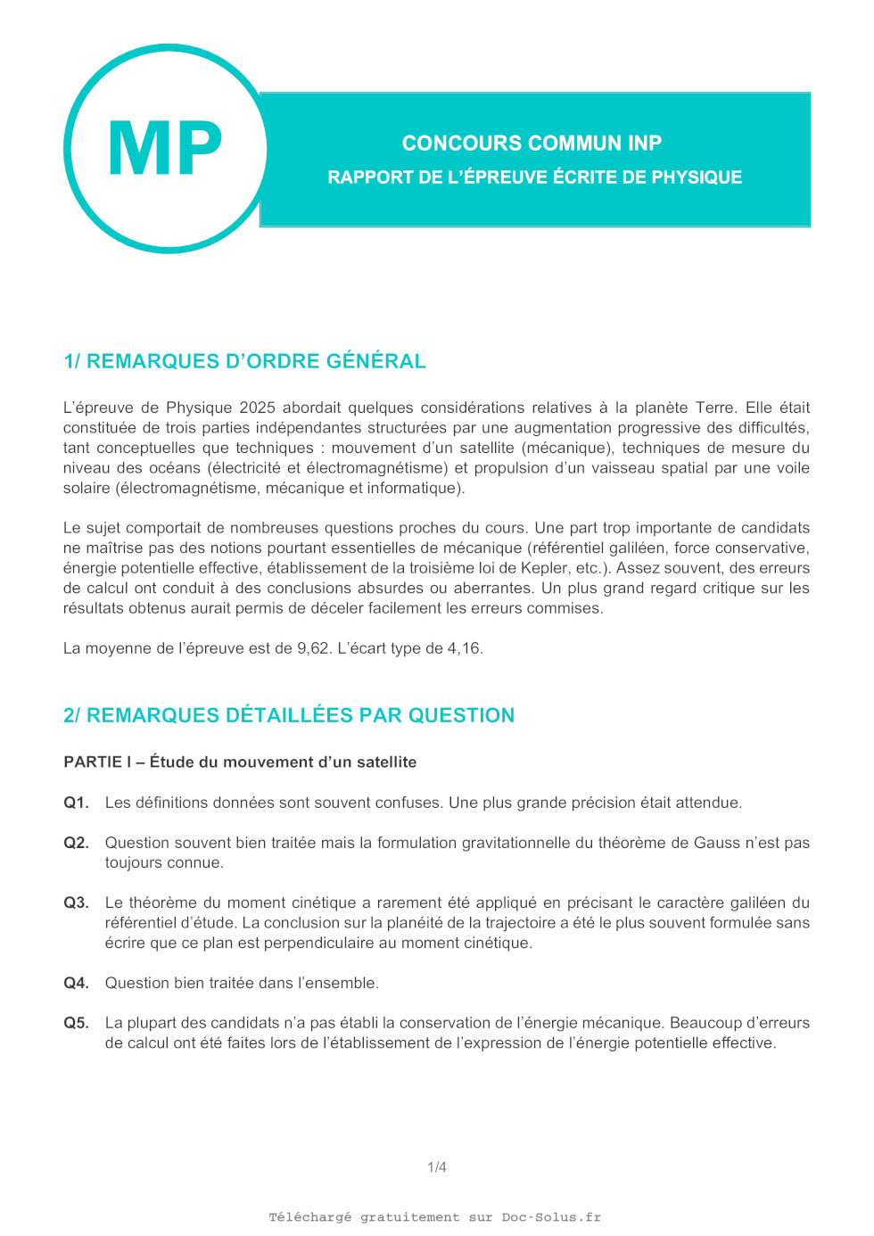 Partie I - Étude du mouvement d'un satellite