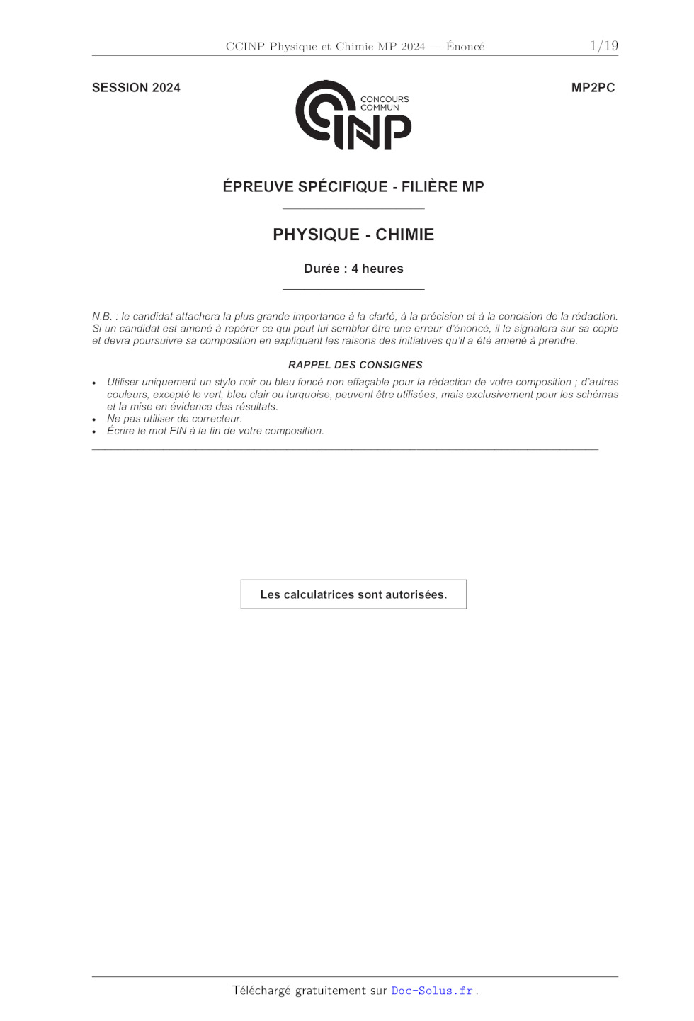 ÉPREUVE SPÉCIFIQUE - FILIÈRE MP