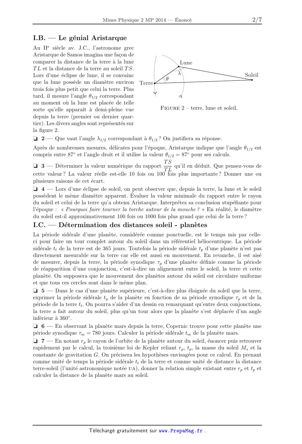 du soleil et celui de la terre qu'a obtenu Aristarque. Interprétez sa