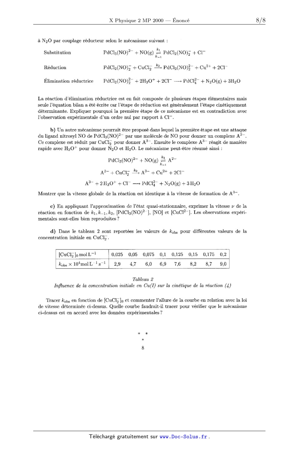 réaction en fonction de 1--91, k_1, k'2, [PdClg(NO)*], [NO] et [CuCl2_]. Les