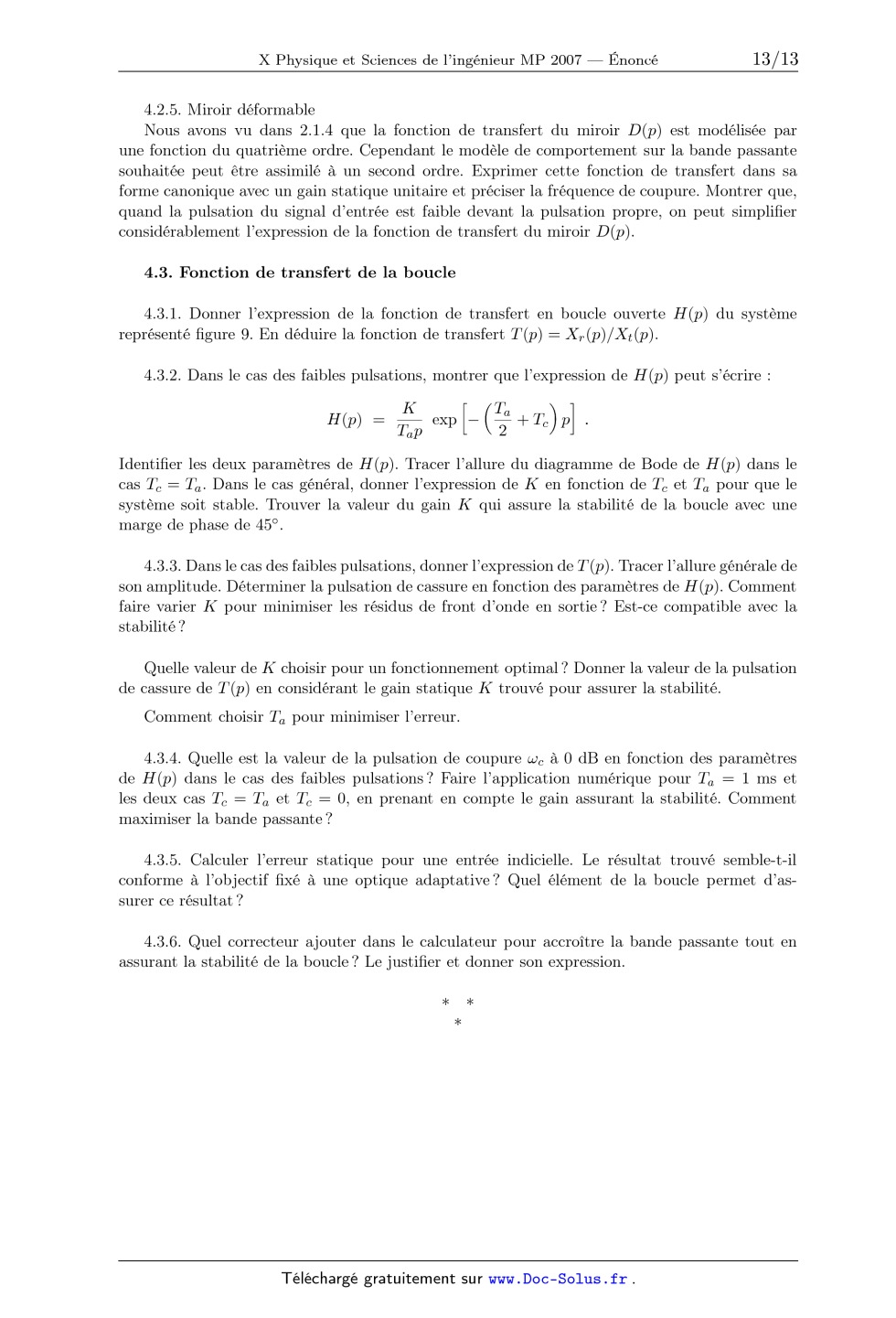 4.3.2. Dans le cas des faibles pulsations, montrer que l'expression de H (p)