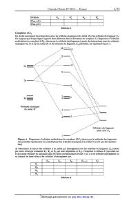 Constante d'Avogadro N A = 6,02 >< 1023 mol"1 Constante de Faraday F = 96,5 >< 103 C-mol"1 Constante des gaz parfaits R = 8,31 J --K"1--mol_1 Tl 1 On prendra w % 0,059 V à 298 K. F Potentiels standard Couple Cu+ / Cu Cu2+ /Cu+ Pd2+ /Pd E° (V) 0,52 0,16 0,92 Constantes de formation des compleæes mua-- Produit de solubilité Produit de solubilité Ks du précipité CuCl : sz : 6,7 Economie d 'atomes L'économie d'atomes est un nombre (exprimé en %) défini comme le rapport de la masse molaire du produit recherché sur la somme des masses molaires des réactifs utilisés (en tenant compte des nombres stoechiomé- triques). Déplacements chimiques Quelques déplacements chimiques en RMN du proton (proton correspondant noté en gras) -CH2-OH o= c--cn «JH--OH "... 5,0 6,0H ppm 0,5- 5,5 ppm 2,1 2,6 ppm 1,6 2,0 ppm 3,2- 3,6 ppm 0,8 1,6 ppm oooFlNooo 2015-02«27 09:14:53 Page 10/10 [_ ç, % NOM= ................................................................................................................. ('a Prénom= __________________________________________________________________ V , / Epreuve de Chimie Filière PC cnucnunsæumnoe-surëoec ËË"ËËÎä : Ne rien porter sur cette feuille avant d'avoir rempli complètement l'en--tête C' = 0,01 mol-L"1 3 pCl 1,5 --0,5 2015-02-25 11 :34 :41 Ne rien écrire dans la partie barrée 20 14--006-DR Tableau 1 Orbitale 'I'æ \I/î \Ily \II; Plan æMz Plan yMz Tableau 2 \Ij4 Tableau 3 Spectre RMN 1H de 5 (300 MHZ) (s : singulet, d : doublet, m : multiplet) 5(ppm) IM 0,99 1,40-1,53 1,67--1,87 5,28 6,06 J (Hz) 6,9 1,5 1,5 Attribution éventuelle