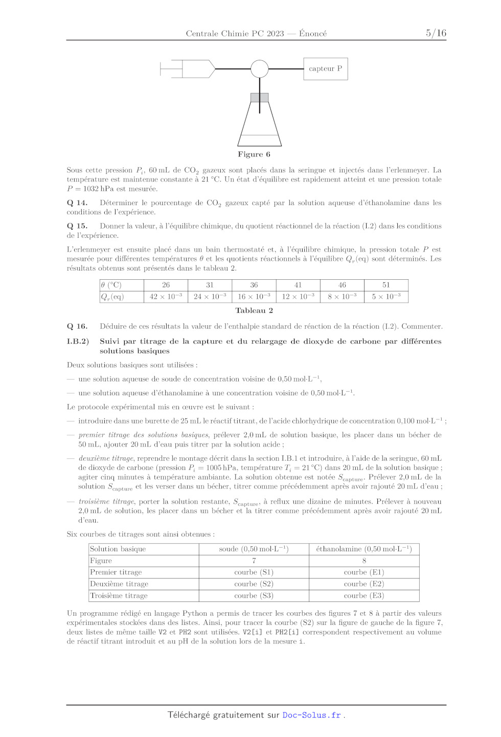 Q 2. En s'appuyant sur une étude thermodynamique précise, commenter les