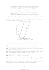 Q. 18. Exprimer [] en fonction des intensités de fluorescence I et I0 , ainsi que de []0 .