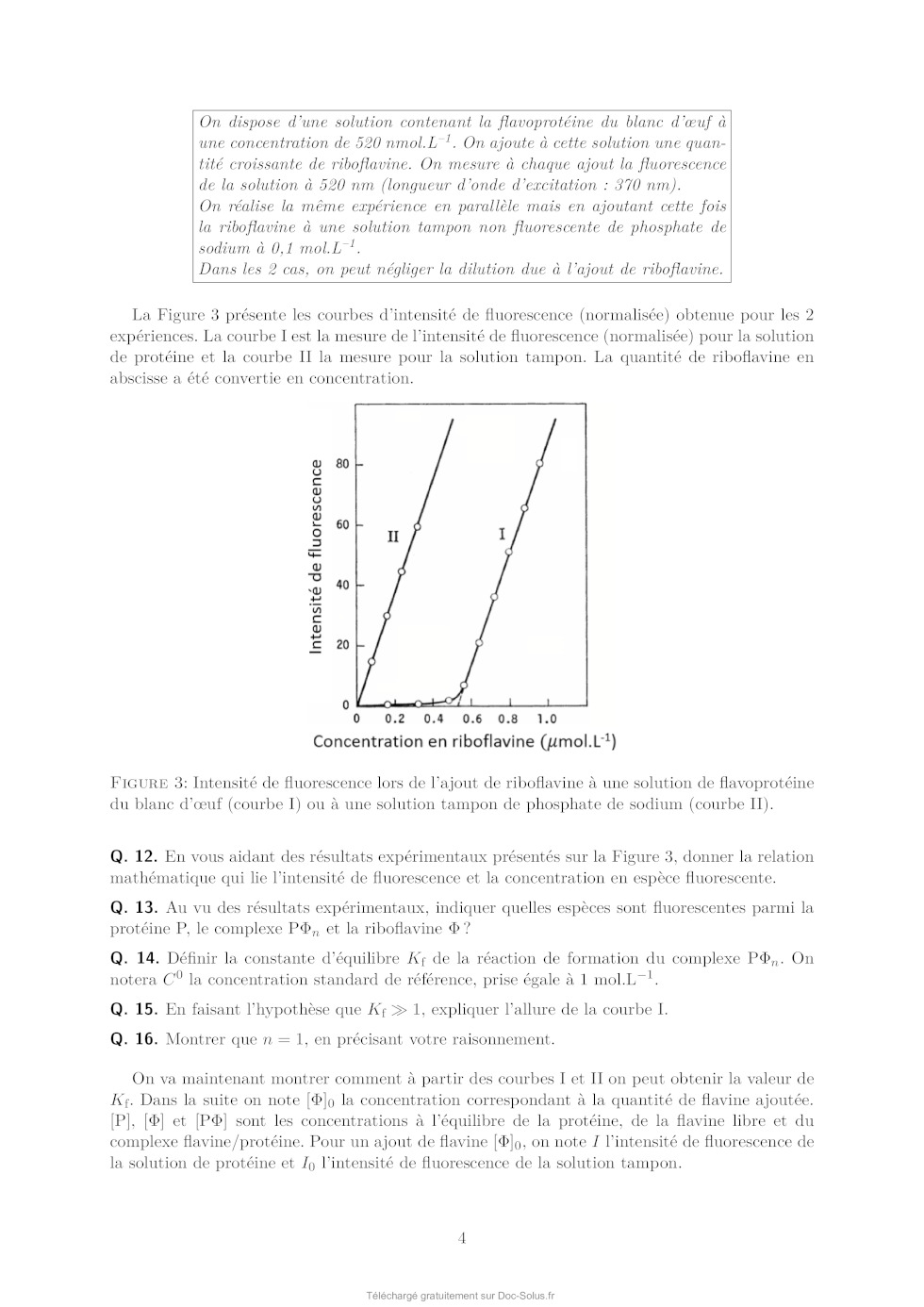 Q. 15. En faisant l'hypothèse que Kf 1, expliquer l'allure de la courbe I.