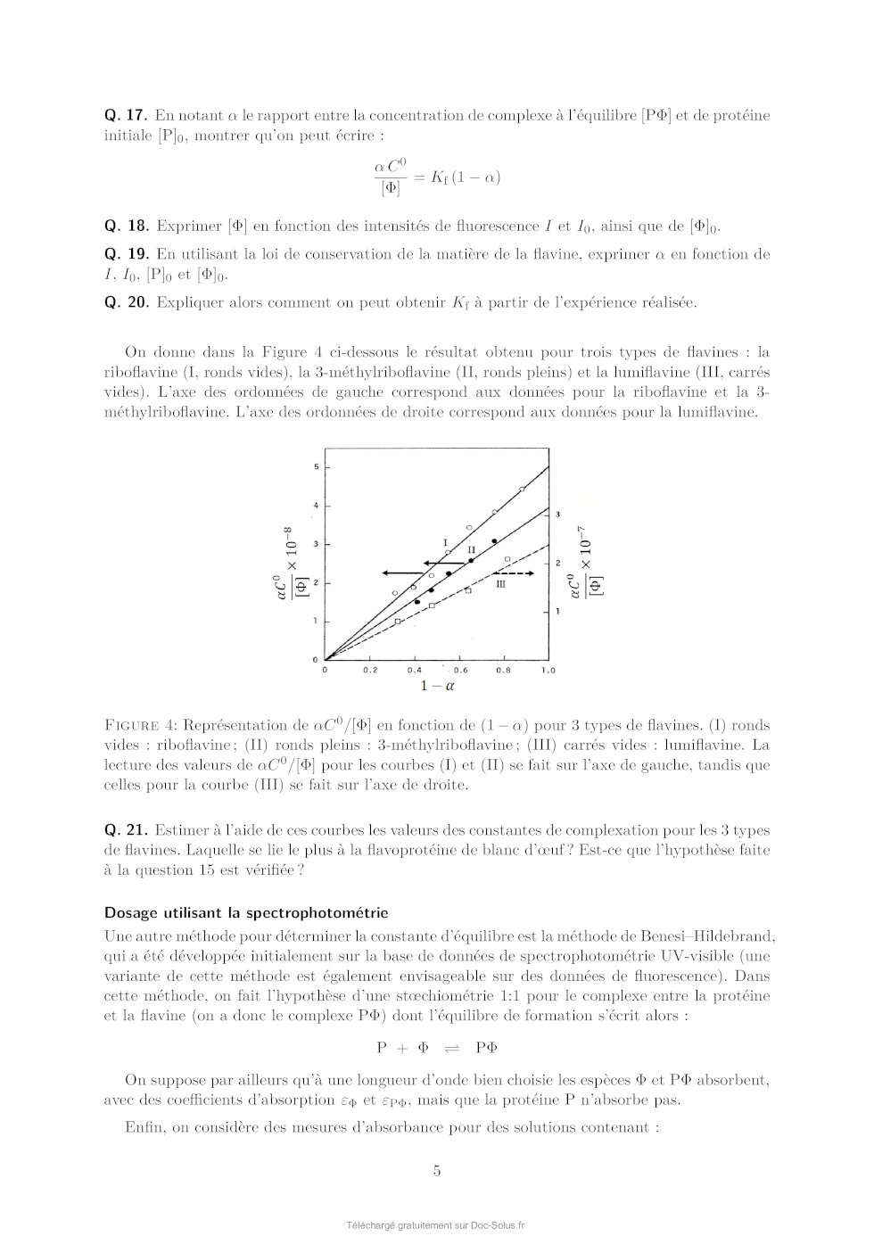 [P], [] et [P] sont les concentrations à l'équilibre de la protéine, de la flavine libre et du