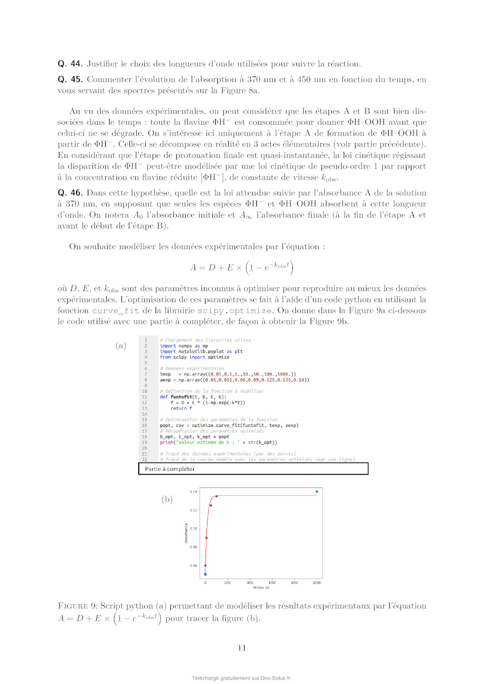 Q. 22. Dans les conditions expérimentales indiquées ici, exprimer [P] en fonction de []0 , [P]0 ,