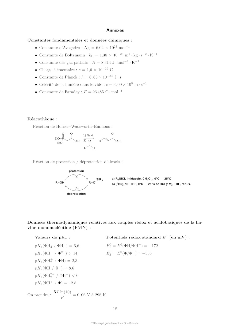en fonction des constantes thermodynamiques (potentiels rédox standards et pKa ) fournies. On