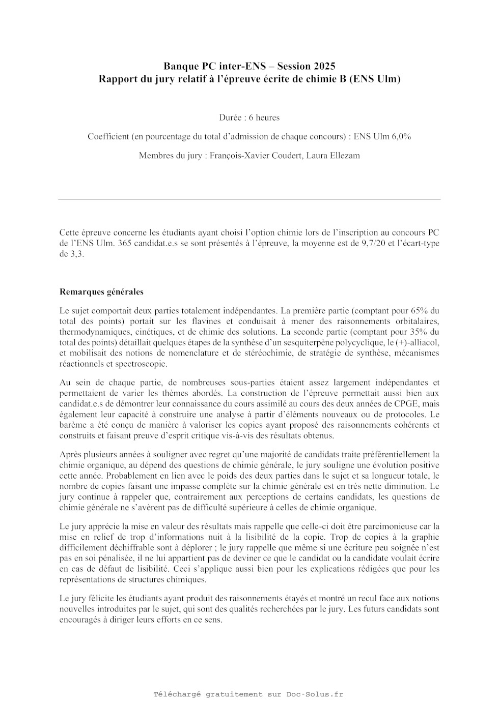 indication du poids relatif de chaque partie dans le barème total est donnée à la suite du titre de