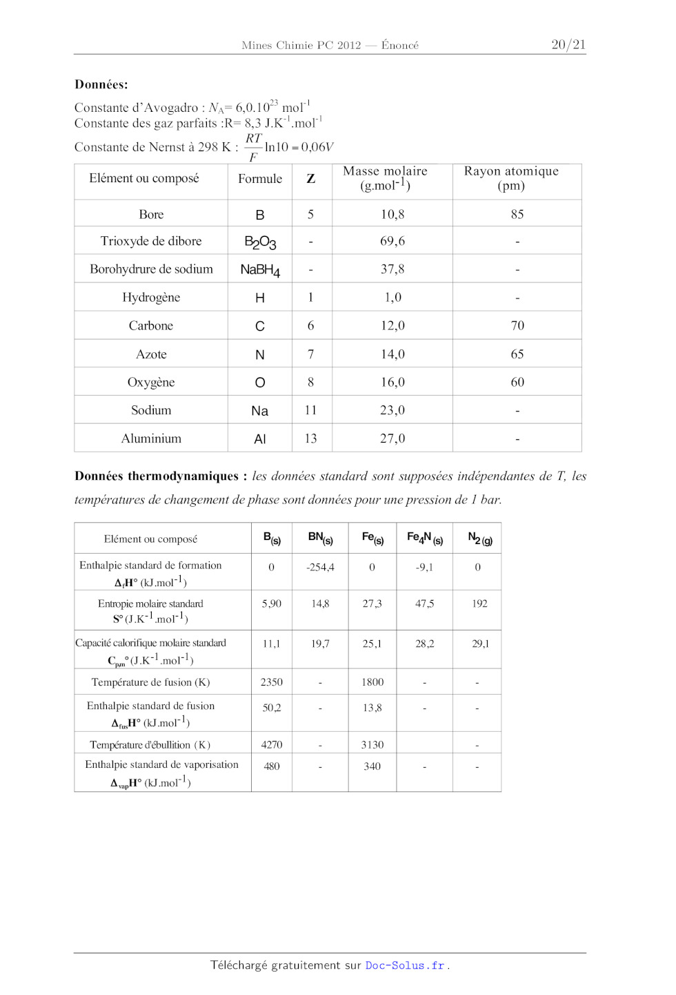 Des données utiles à la résolution du problème sont fournies à la fin de
