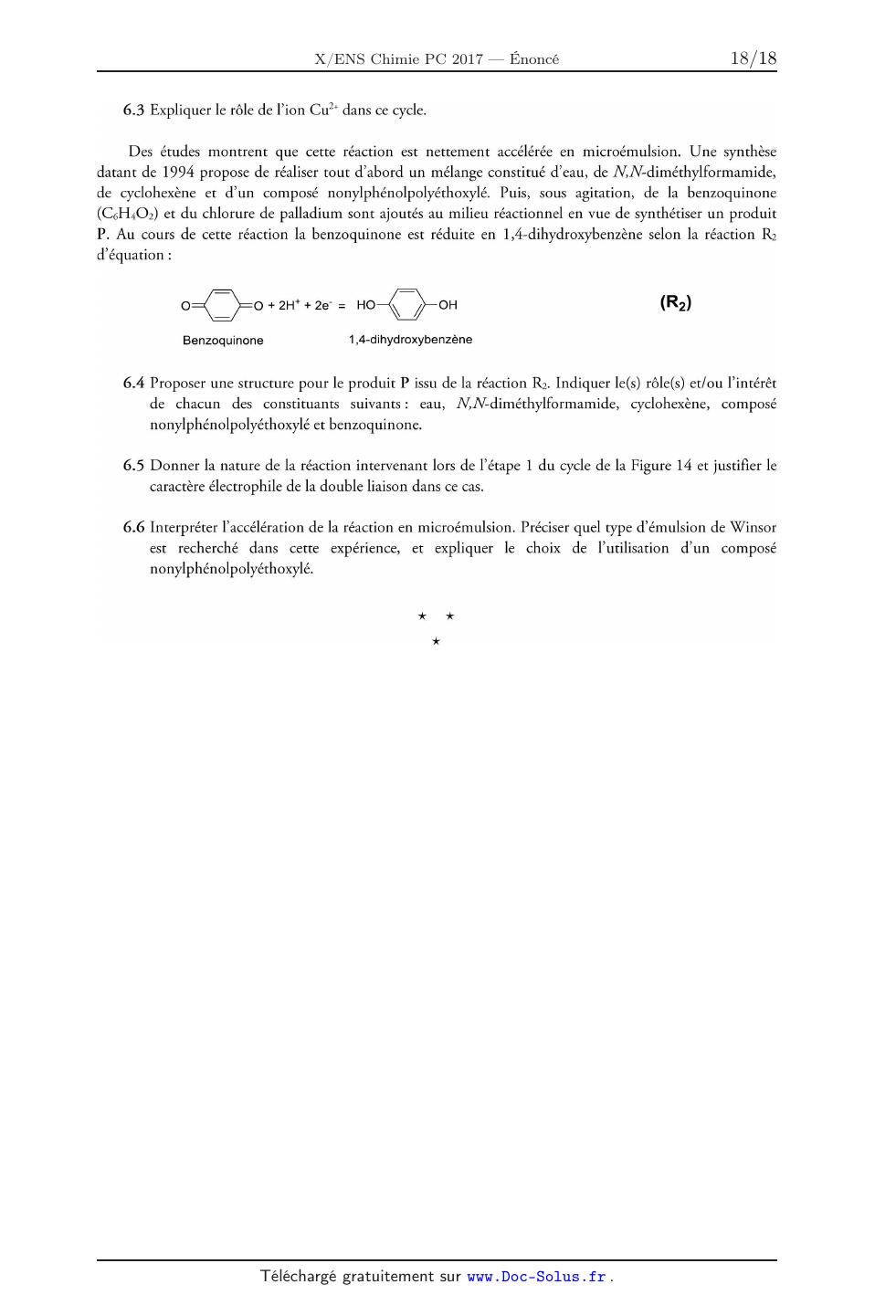 6.2 Établir l'équation de réaction du cycle catalytique.