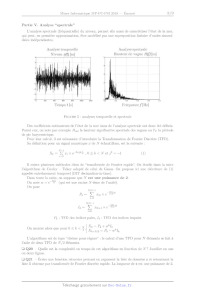 H, = max n(t) -- min n(t) pour2 S i < 71 tEUR[Z,L1, Z,] te[Z., Z...l On définit les périodes de vagues par T, = Zi+1 -- Z,. Ü Q5 -- Pour le signal représenté sur la Figure 2, que valent approximativement H1, H2 et H3 ? Que valent approximativement T1 et T2 ? On adopte désormais une représentation en temps discret du signal. On appelle horodate, un ensemble (fini) des mesures réalisées sur une période de 20 minutes a une fréquence d'échantillon-- nage de 2 Hz. Les informations de niveau de surface libre d'un horodate sont stockées dans une n en mètres N _3_...; \ \ \ \ \ \ \ i \ i \ \ \ \ \ \ \ \ \ \ \ i \ \ \ . \ i \ '\ 0 11 12 13 14 15 16 17 18 19 20 21 22 23 24 25 26 27 28 29 30 31 32 33 34 35 36 37 38 39 t en secondes \;}\\\i11 01234567891 FIGURE 2 : Passages par le Niveau moyen en Descente (PND). Ici la moyenne m vaut 2 liste de flottants liste_niveaux. On suppose qu'aucun des éléments de cette liste n'est égal a la moyenne. :| Q6 -- Proposer une fonction moyenne prenant en argument une liste non vide liste_niveaux, et retournant sa valeur moyenne. :| Q7 -- Proposer une fonction integrale_precise prenant en argument une liste non vide liste_niveaux, et retournant la valeur approchée de l'intégrale de 77 sur une période de 20 minutes. On demande d'utiliser la méthode des trapèzes. En déduire une fonction moyenne_precise prenant en argument une liste non vide liste_niveaux et retournant une estimation de la moyenne de 77 sur une période de 20 minutes. Ü Q8 -- Proposer une fonction ind_premier_pzd(liste_niveaux) retournant, s'il existe, l'indice du premier élément de la liste tel que cet élément soit supérieur a la moyenne et l'élément suivant soit inférieur à la moyenne. Cette fonction devra retourner --1 si aucun élément vérifiant cette condition n'existe. Ü Q9 * Proposer une fonction retournant l'indice i du dernier élément de la liste tel que cet élément soit supérieur a la moyenne et l'élément suivant soit inférieur à la moyenne. Cette fonction devra retourner --2 si aucun élément vérifiant cette condition n'existe. On cherchera a proposer une fonction de complexité O(1) dans le meilleur des cas. On souhaite stocker dans une liste successeurs, les indices des points succédant (strictement) aux PND (voir Figure 3). :| Q10 -- On propose la fonction construction_successeurs en annexe (algorithme 1). Elle retourne la liste successeurs. Compléter (sur la copie) les lignes 6 et 7. :| Q11 -- Proposer une fonction decompose_vagues(liste_niveaux) qui permet de décomposer une liste de niveaux en liste de vagues. On omettra les données précédant le premier PND et celles Horodate échantillon niveau moyen _ indice point succédant au PND FIGURE 3 : propriétés d'une vague succédant au dernier PND. Ainsi decompose_vagues( [1 , --1 , --2, 2, --2, --1 , 6, 4, --2, --5] ) (noter que cette liste est de moyenne nulle) retournera [[--1 , --2, 2] , [--2, --1 , 6, 4] ]. On désire maintenant caractériser les vagues. Ainsi, on cherche à concevoir une fonction proprietes (liste_niveaux) retournant une liste de listes à deux éléments [Hi ,Ti] permettant de caractériser chacune des vagues i par ses attributs : -- Hi, sa hauteur en mètres (m) (voir Figure 3), * Ti, sa période en secondes (S). D Q12 -- Proposer une fonction proprietes(liste_niveaux) réalisant cet objectif. On pourra utiliser les fonctions de Python max(L) et min(L) qui retournent le maximum et le minimum d'une liste L, respectivement. Partie III. Contrôle des données Plusieurs indicateurs sont couramment considérés pour définir l'état de la mer. Parmi eux, on note : Ü Q13 -- Proposer une fonction prenant en argument la liste liste_niveaux de la question 12 et retournant H...". Afin de déterminer H...; et TH1/3, il est nécessaire de trier la liste des propriétés des vagues. La méthode utilisée ici est un tri rapide (quick sort). On donne en annexe un algorithme possible pour la fonction triRapide (algorithme 2). Trois arguments sont nécessaires : une liste liste, et deux indices g et d. Ü Q14 * Préciser les valeurs que doivent prendre les arguments g et d au premier appel de la fonction triRapide. Compléter (sur la copie) la ligne 2. Lorsque le tri rapide est utilisé et que le nombre de données a traiter devient petit dans les sous--listes (de l'ordre de 15), il peut être avantageux d'utiliser un "tri par insertion". On appelle trilnsertion la fonction qui permet d'effectuer un tri par insertion. Elle admet en argument une liste liste, et deux indices g et d. Ces deux indices permettent de caractériser la sous--partie de la liste à trier (indices de début et de fin inclus). Ü Q15 * Donner les modifications à apporter à la fonction triRapide pour que, lorsque le nombre de données dans une sous--liste devient inférieur ou égal à 15, la fonction tri Insert ion soit appelée pour terminer le tri. Le code incomplet de la fonction tri Insert ion est donné en annexe : algorithme 3. El Q16 * La fonction triInsertion admet trois arguments : une liste de données liste, et deux indices g et d. Elle trie dans l'ordre croissant la partie de la liste comprise entre les indices g et d inclus. Compléter cette fonction (avec sur la copie le nombre de lignes de votre choix). La distribution des hauteurs de vague (voir Figure 4) lors de l'analyse vague par vague est réputée être gaussienne. On peut contrôler ceci par des tests de skewness (variable désignée par S) et de kurtosis (variable désignée par K) définis ci--après. Ces deux tests permettent de quantifier respectivement l'asymétrie et l'aplatissement de la distribution. histogramme des hauteurs de vagues (20 min) 14 nombre 0 0.0 0.5 1.0 1.5 2.0 2.5 3.0 3.5 4.0 hauteur [m] FIGURE 4 : histogramme des hauteurs de vague On appelle Ë et 02 les estimateurs non biaisés de l'espérance et de la variance, n le nombre d'éléments H1, H2, ..., H... On définit alors _ n 1 " ._--4_ 3(n--1)2 K_(n--1)(n--