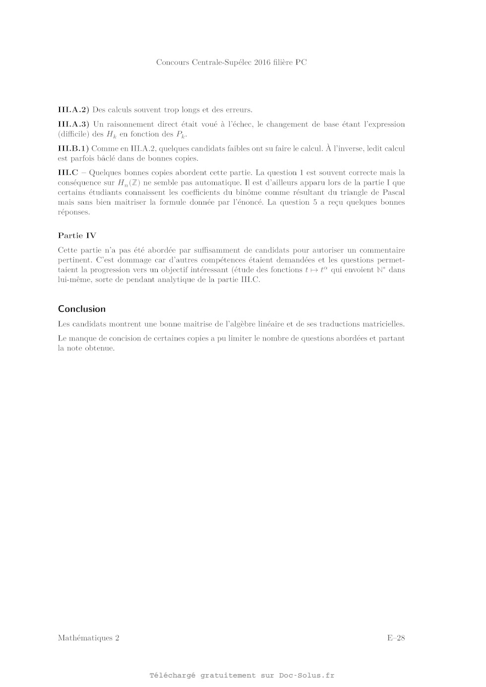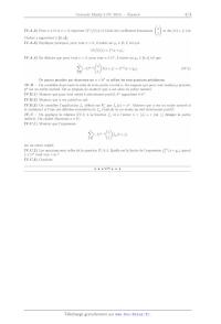 [[O,n -- l]], le 2 n et [EUR < 0. Pour ce dernier cas, on posera k : --p. III.C.2) En déduire que Hn (Z) C Z, c'est--à--dire que H" est à valeurs entières sur les entiers. III.C.3) Soit P EUR Rn{X] à valeurs entières sur les entiers. Montrer que 5(P) est aussi à valeurs entières sur les entiers. III.C.4) Montrer que P EUR [R,JX] est à valeurs entières sur les entiers si et seulement si ses coordonnées dans la base (H k) kEUR[lÛml sont entières. III.C.5) Soit P EUR MX] de degré d EUR D\l. Montrer que si P est à valeurs entières sur les entiers alors d!P est un polynôme à coefficients entiers. Étudier la réciproque. IV Généralisation de l'opérateur de différence et application Pour une application f : [Rî --> [R de classe 600, on définit l'application