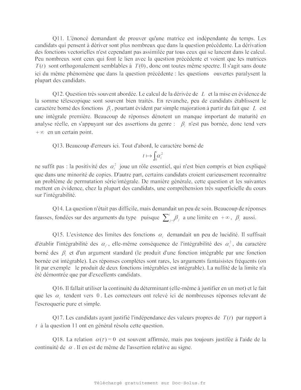 Question 14 En déduire que les &- (t) , i = 1, m possèdent une limite quandt +