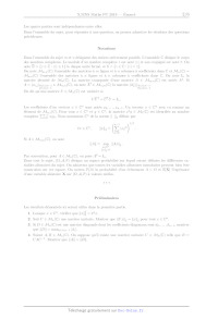 note D={zeC:12| <1} le disque unité fermé, et S={z2eC:12| =1}. On note Myn(C) l'ensemble des matrices à m lignes et à n colonnes à coefficients dans EUR et M,(C) = Mnn(C) l'ensemble des matrices à n lignes et à n colonnes à coefficients dans C. On note I, la matrice identité de MA(C). La matrice transposée d'une matrice À EUR Myn(C) est notée AT. Si À = (a; j)o 1. On