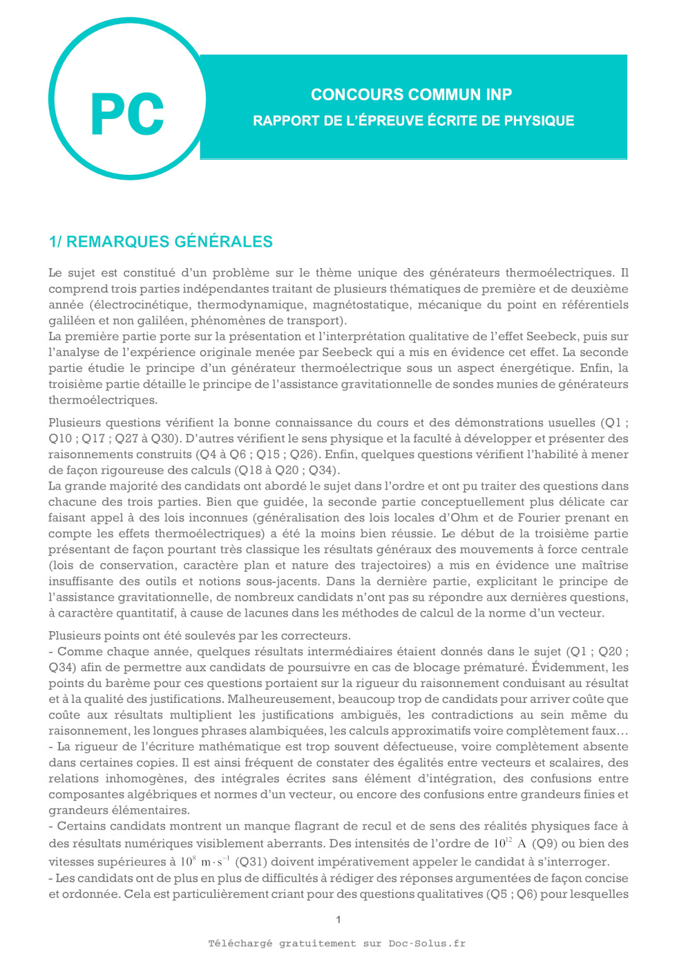 ÉPREUVE SPÉCIFIQUE - FILIÈRE PC