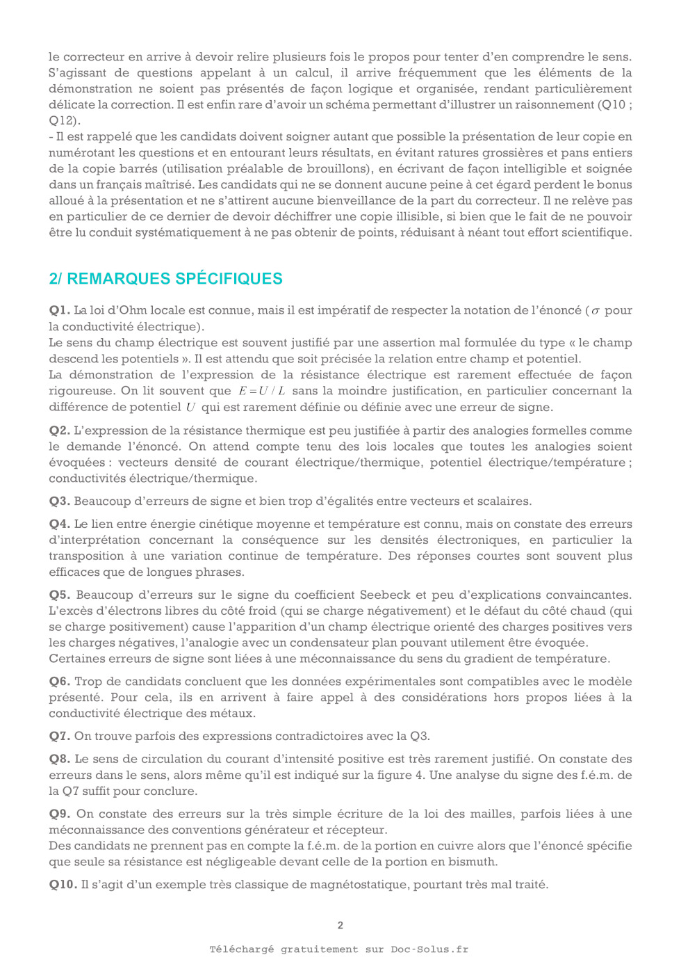 N.B. : le candidat attachera la plus grande importance à la clarté, à la