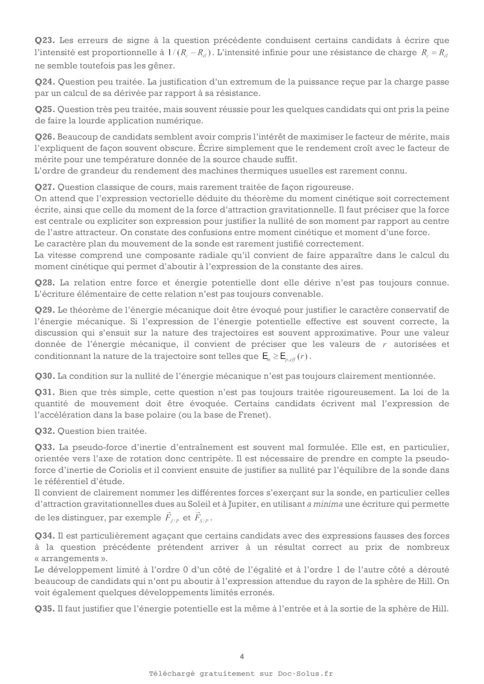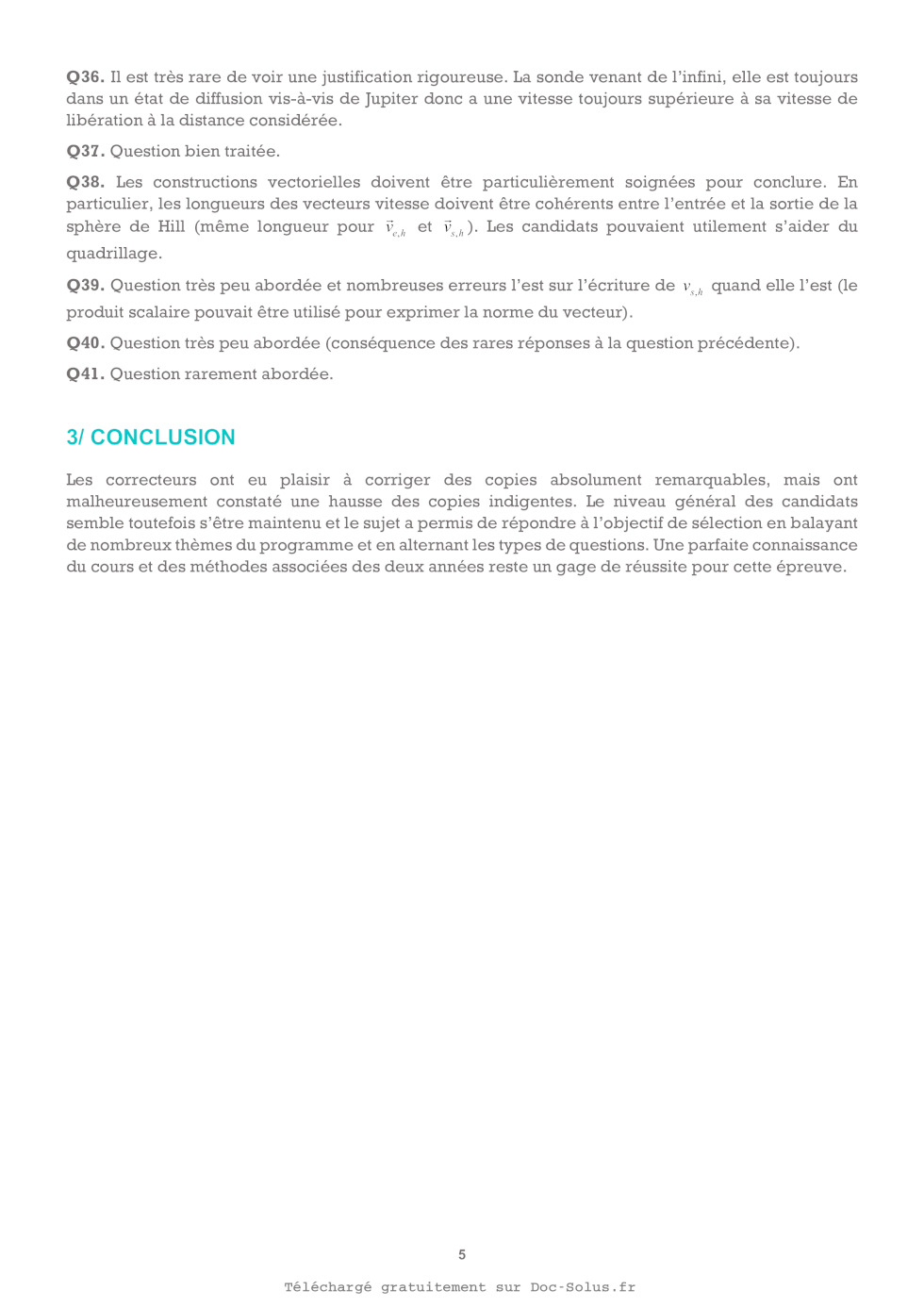 Q36. Pourquoi la vitesse v j de la sonde est-elle nécessairement supérieure ou