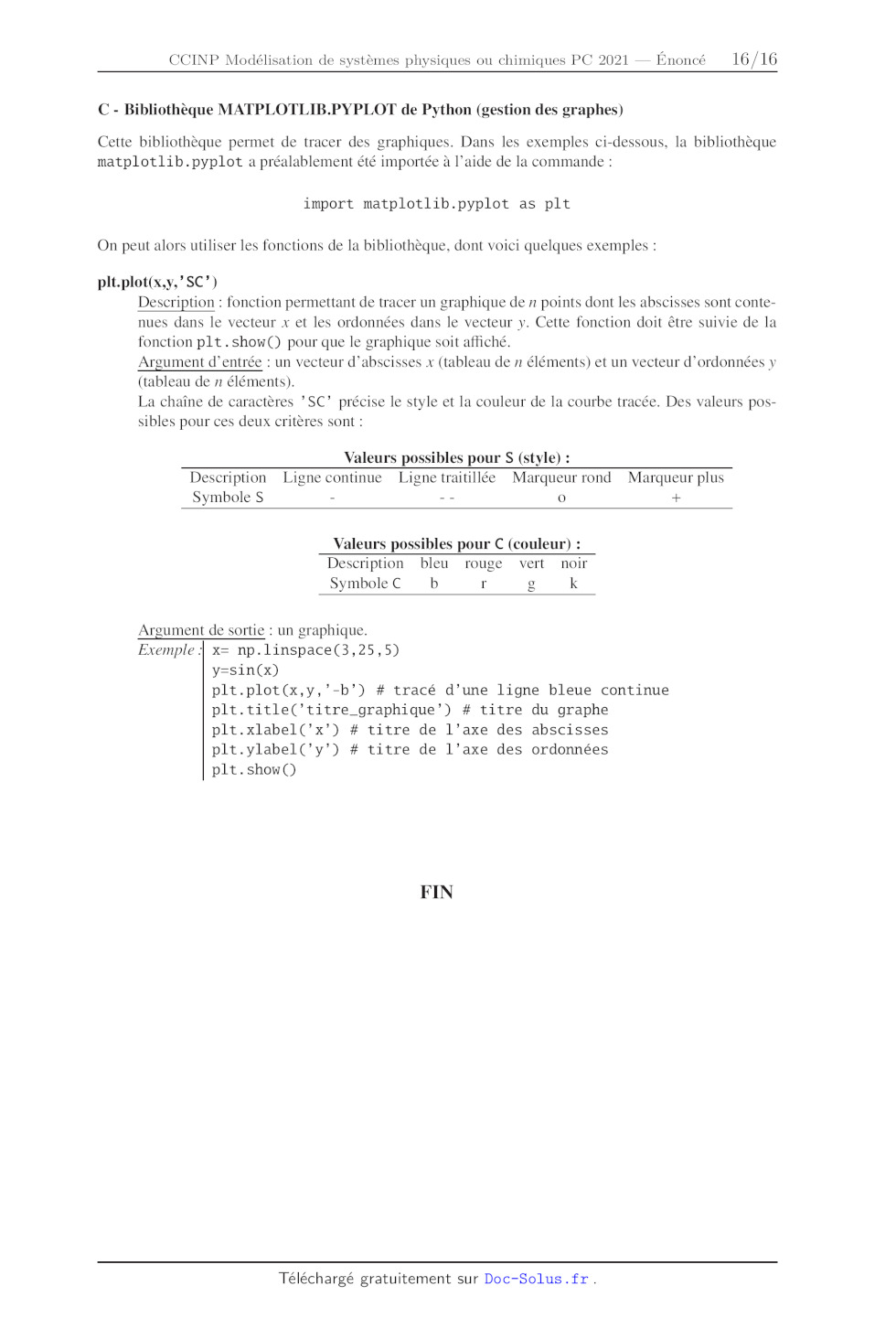 MODÉLISATION DE SYSTÈMES PHYSIQUES OU CHIMIQUES