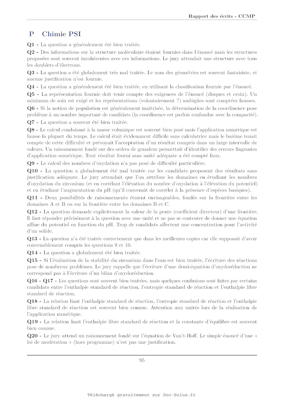 Q15- Le zirconium Zr(s) est-il stable en présence d'eau ? Justifier, et écrire