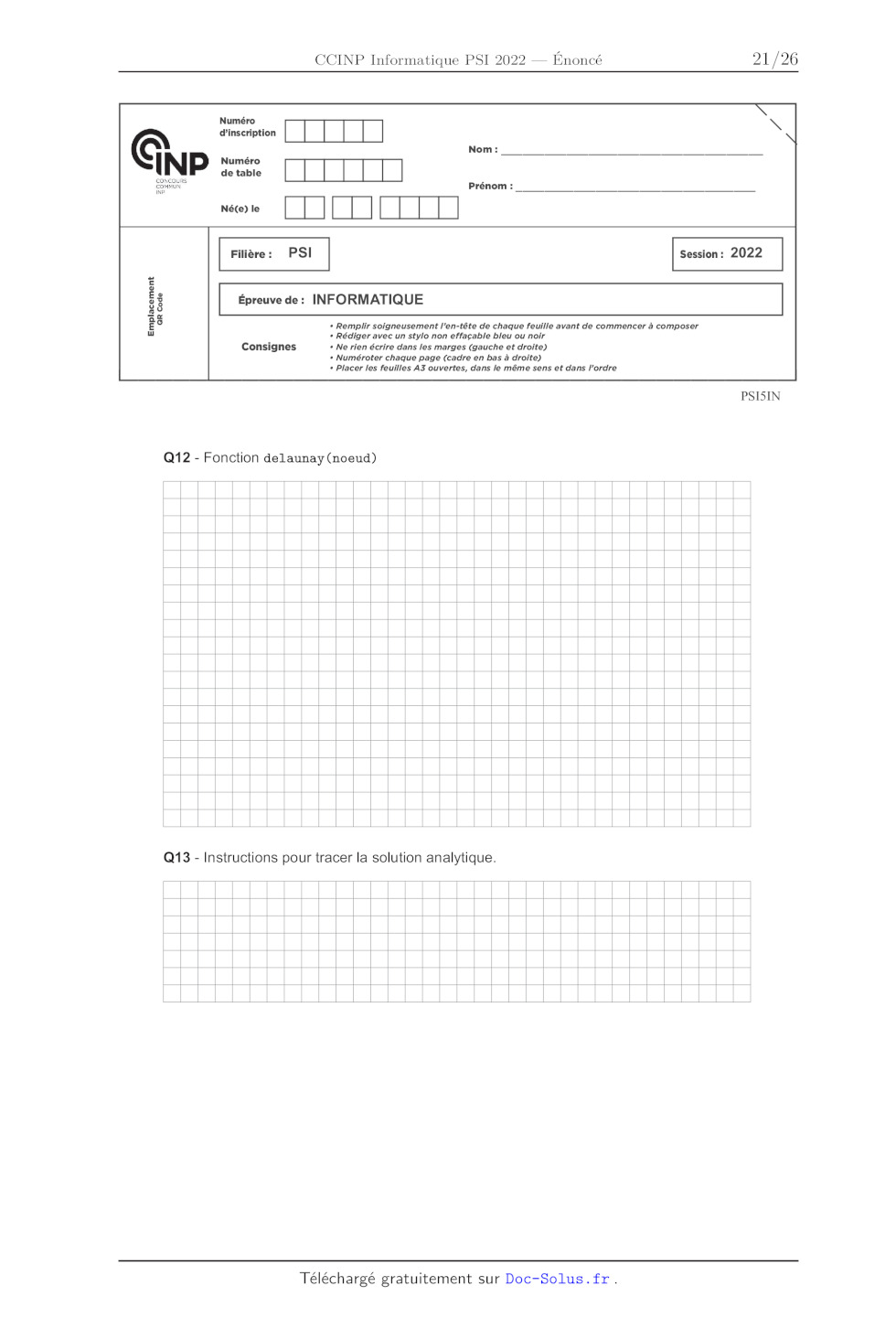ÉPREUVE SPÉCIFIQUE - FILIÈRE PSI