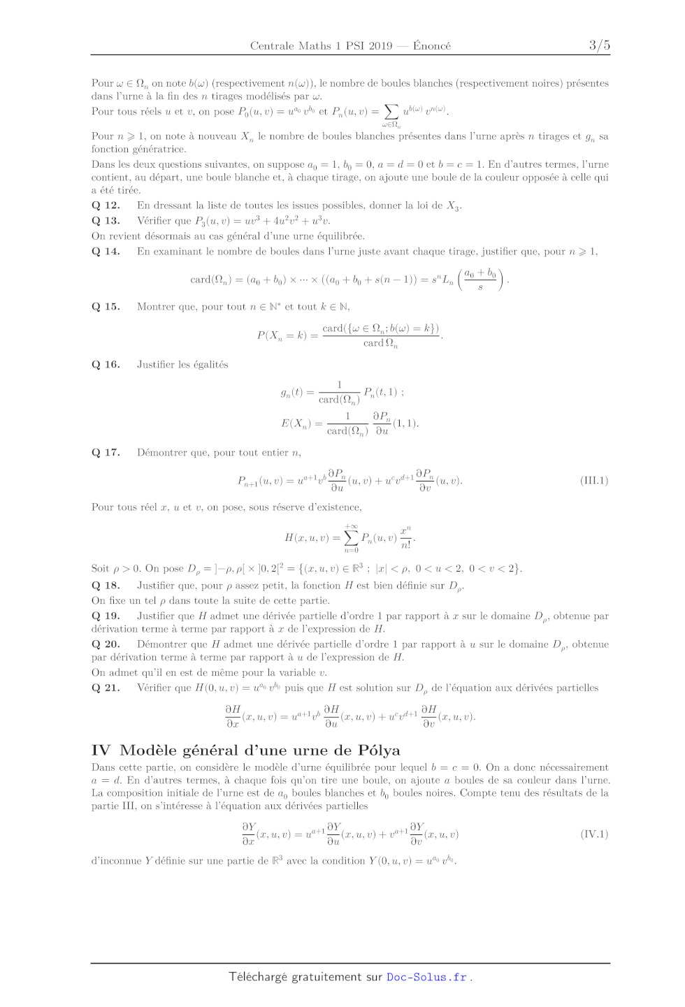 Pour w EUR (,, on note b(w) (respectivement n(w)), le nombre de boules blanches