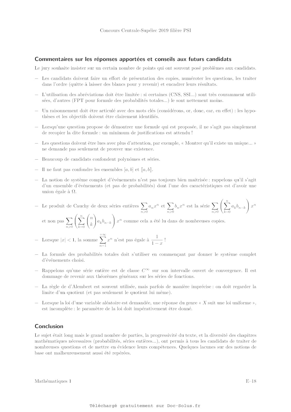 Q 28. À l'aide des résultats des questions 16 et 19, déterminer l'espérance de