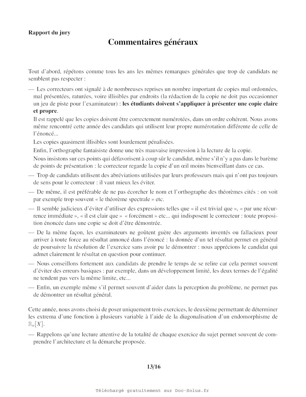 N.B. : le candidat attachera la plus grande importance à la clarté, à la