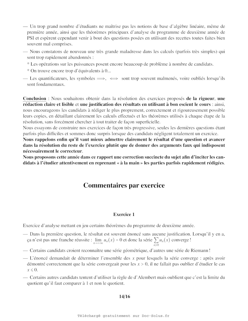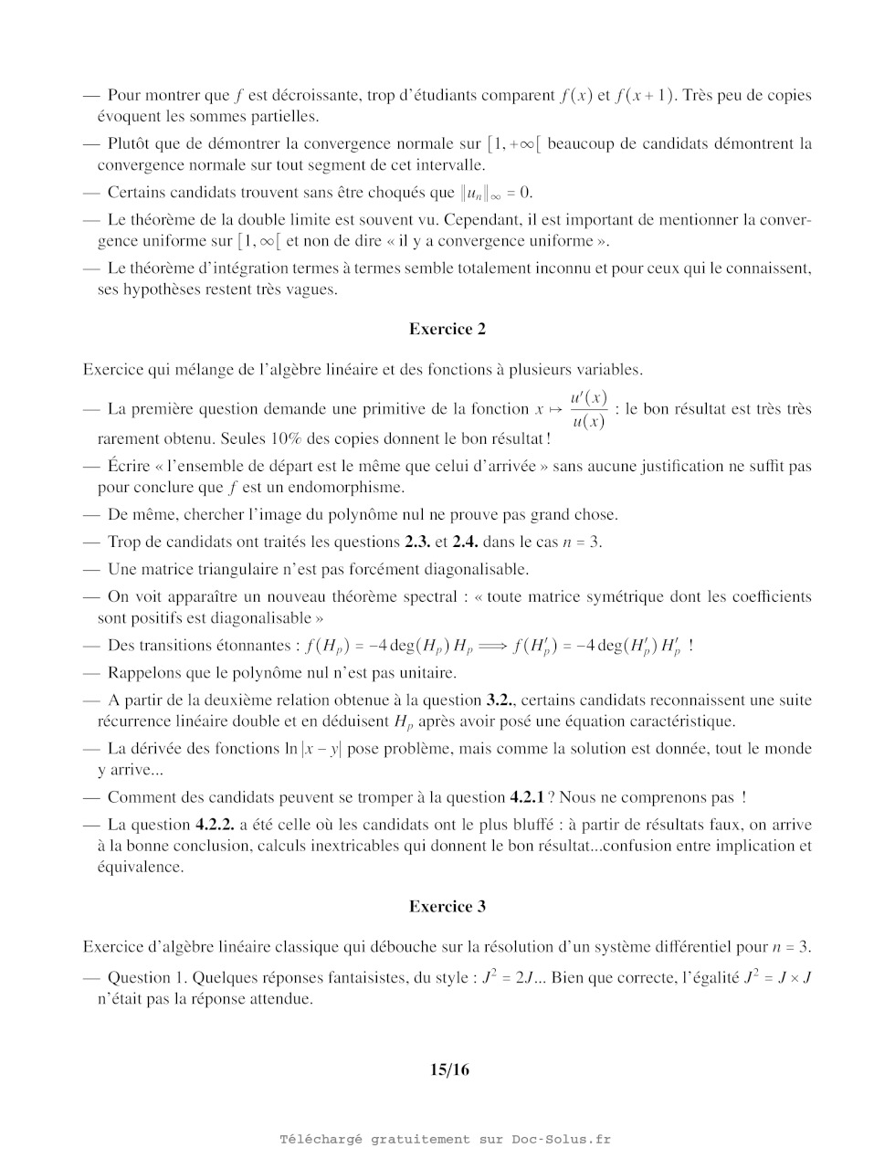 Les théorèmes utilisés seront cités avec précision et on s'assurera que leurs