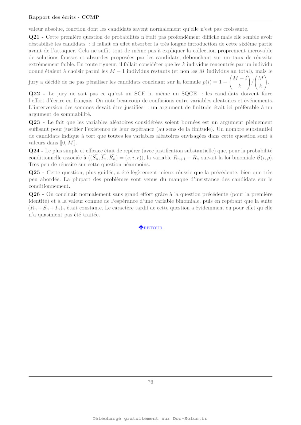 22 Soit Z une variable aléatoire à valeurs dans {0, . . . , M }, montrer que :