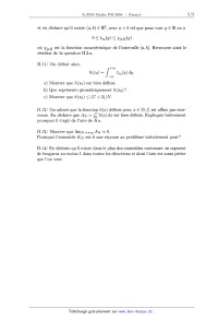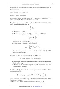 et en déduire qu'il existe (a, b) EUR R2, avec a < b tel que pour tout y E R on a 0 S tæo(y) _<_ X[a,b](y) où x[a,b] est la fonction caractéristique de l'intervalle [a,b]. Retrouver ainsi le résultat de la question Il.3.a. ll.ll/ On définit alors +oo h<æo) = ] tæo(y)d "00 a) Montrer que h(oeo) est bien définie. b) Que représente géométriquement h(oeo) '? c) Montrer que h(:m)< (C + 2)/N. ll.12/ On admet que la fonction h((æ) définie pour 33 E [O, 1] est affine par mor-- ceaux. En déduire que A N -- f01f1(:r)doe est bien définie. Expliquer brièvement pourquoi il s'agit de l'aire de KN. Il.l3/ Montrer que limN_,+OO AN : 0. Pourquoi l'ensemble KN est--il une réponse au problème initialement posé '? 11.14 / En déduire qu'il existe dans le plan des ensembles contenant un segment de longueur au moins 1 dans toutes les directions et dont l'aire est aussi petite que l'on veut.