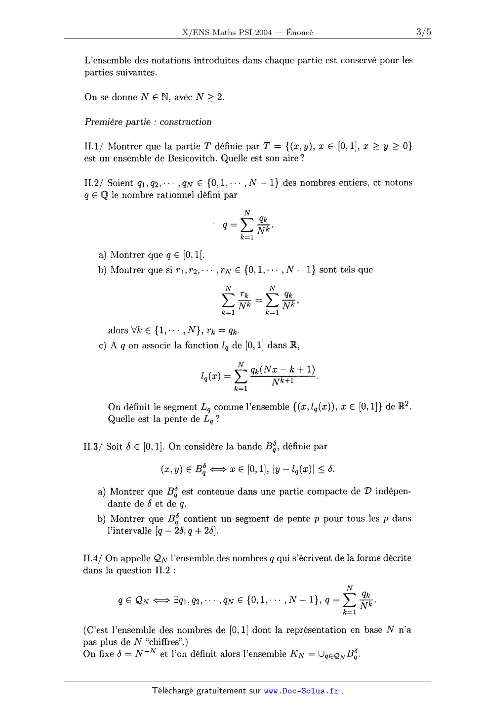 (any) EUR 33 => fl? EUR [0,1], ly -- lq(OE)l < 5- a) Montrer que Bg est contenue dans une partie compacte de "D indépen- dante de 5 et de q. b) Montrer que B:; contient un segment de pente ]) pour tous les p dans l'intervalle [q -- 26, q + 25]. 11.4 / On appelle QN l'ensemble des nombres q qui s'écrivent de la forme décrite dans la question 11.2 : N qEUR QN<=>SQI7q2WH 7QNE{O:1a'H ,N--1},Q='Z%
