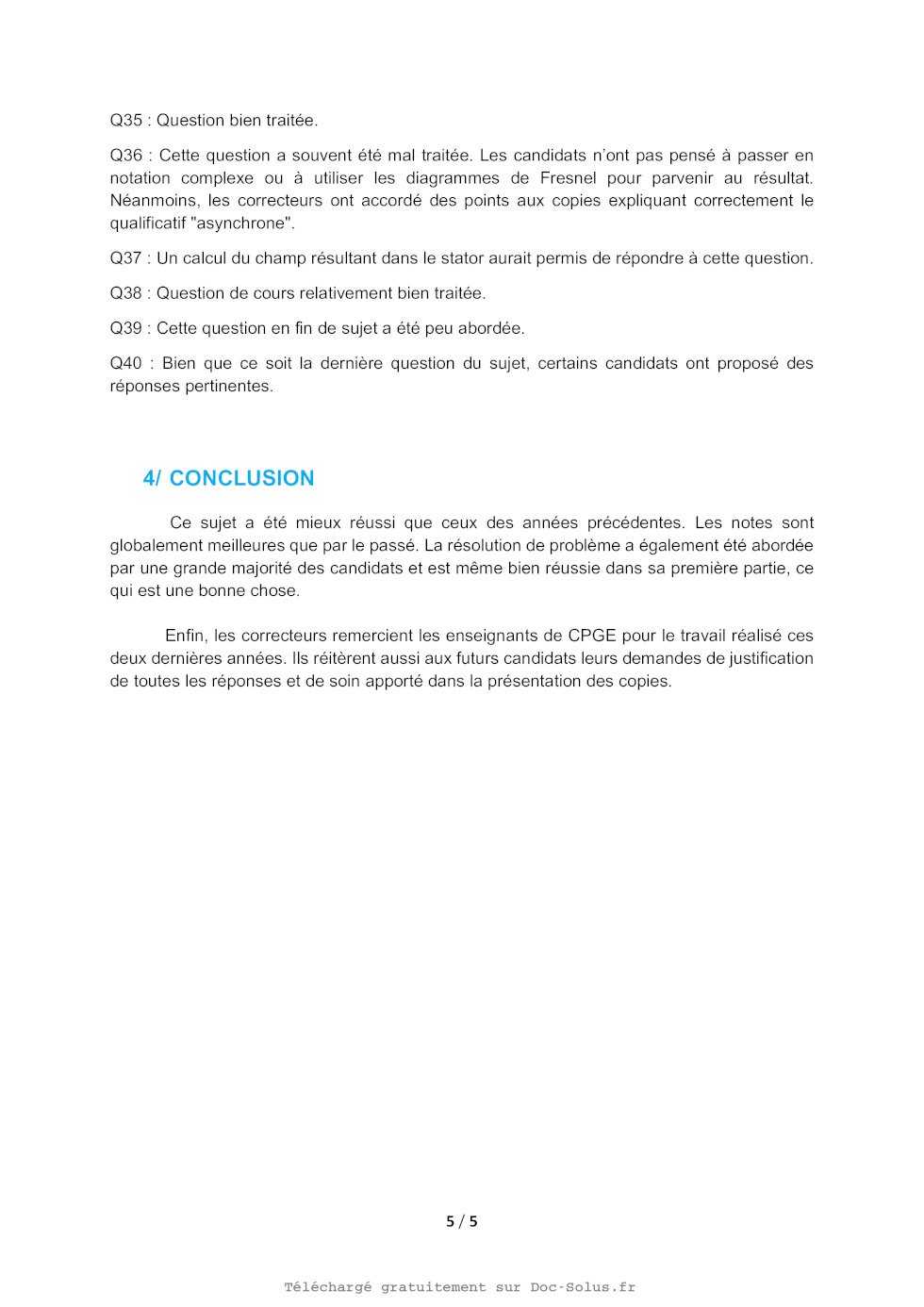Q37. Dans le référentiel fixe (lié au stator), à quelle vitesse angulaire