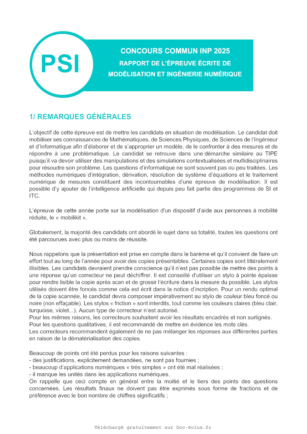 ÉPREUVE SPÉCIFIQUE - FILIÈRE PSI