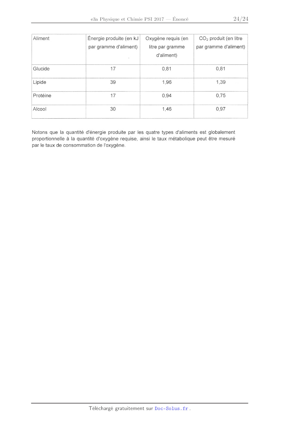 Aliment Énergie produite (en kJ Oxygène requis (en 002 produit (en litre
