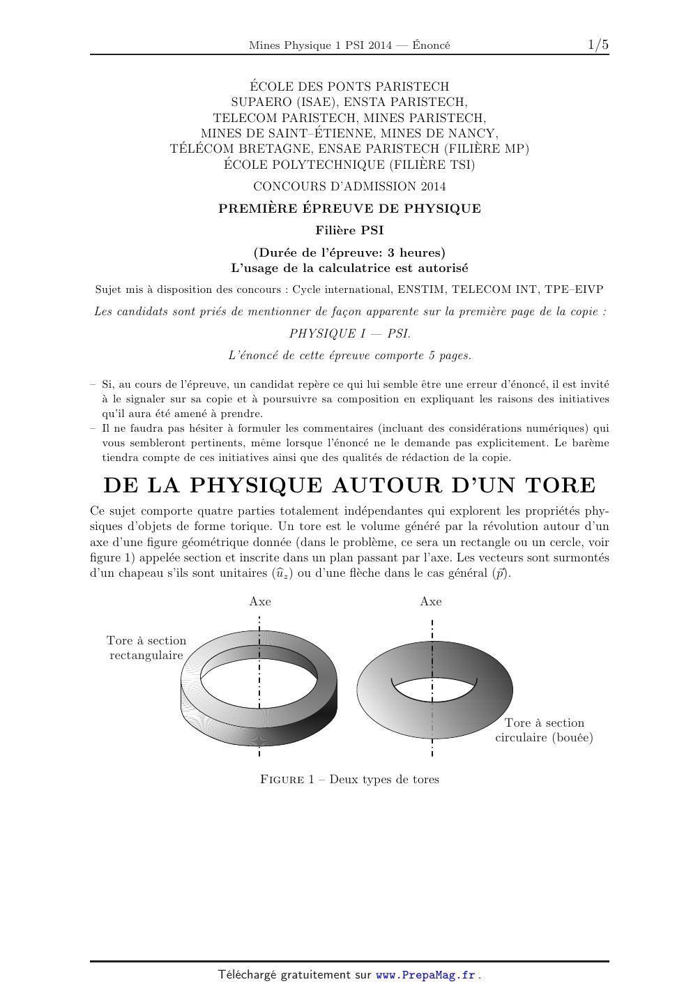 PREMIÈRE ÉPREUVE DE PHYSIQUE