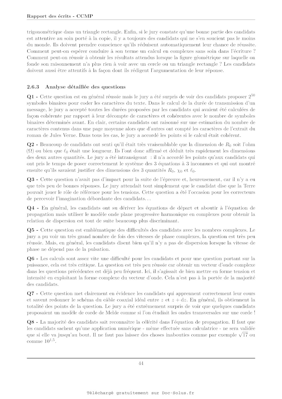 existe une dans le câble situé en z < 0 et déterminer son amplitude. -- 15. L'introduction de cette dérivation « pirate » est-elle détectable par une mesure de p ou bien par celle de l'atténuation du signal incident au niveau du détecteur D ? II La télégraphie sans fil Le physicien italien MARCONI est considéré comme un des inventeurs de la transmission à grande distance de signaux électromagnétiques (la T.S.F., télégraphie sans fil, ou radio). Il a reçu à ce titre le prix NOBEL de physique en 1909. On lui doit la réalisation de la première transmission radio transatlantique (1901) entre le nord-est du Canada et le sud-ouest de l'An- gleterre, séparés par une distance à vol d'oiseau de 3 500 km. IIA Échos ionosphériques Lors de la première série d'expériences, le récepteur se situait au niveau du sol et l'émetteur était porté par des cerf-volants dont l'altitude, limitée par la longueur du fil, ne dépassait pas h -- 180 m. On néglige tout phénomène de réflexion sur le sol, la portée d'un tel émetteur est donc limitée par la courbure de la Terre. -- 16. Représenter sur un schéma les points d'émission E et de réception R du signal radio correspondant à cette transmission. Montrer qu'elle n'est possible que si la distance d = ER vérifie d < dax et exprimer dd, en fonction de h et du rayon terrestre Rr. A.N. : calculer d.,+ et conclure. La propagation sur une grande distance d'ondes radio est en fait possible grâce aux échos ionosphériques, qu'on assimilera à des réflexions de l'onde électromagnétique sur la surface de Page 4/6 Tournez la page S.V.P. Physique I, année 2021 -- filière PSI séparation entre la basse atmosphère (assimilée au vide) et la haute atmosphère (l'ionosphère qui forme un plasma). Une onde électromagnétique incidente plane, progressive, de pulsation w, polarisée rectilignement selon (Oy), est émise en direction de ce plasma, dans une direction faisant l'angle 0 avec la verticale (Oz). L'ensemble est représenté sur la figure 5. À Z Tonosphère (plasma) FIGURE 5 -- Échos ionosphériques D -- 17. Exprimer la représentation complexe du champ électrique ÊË de l'onde incidente d'am- plitude Æ, ; on prendra l'origine des phases au point origine O. Le champ électrique dans le plasma étant recherché sous la forme É' -- Ee, exp ï (2 tk r)| , on peut établir l'équation de dispersion (ED) w'* -- w2+c2k 2 où we > 0 est une