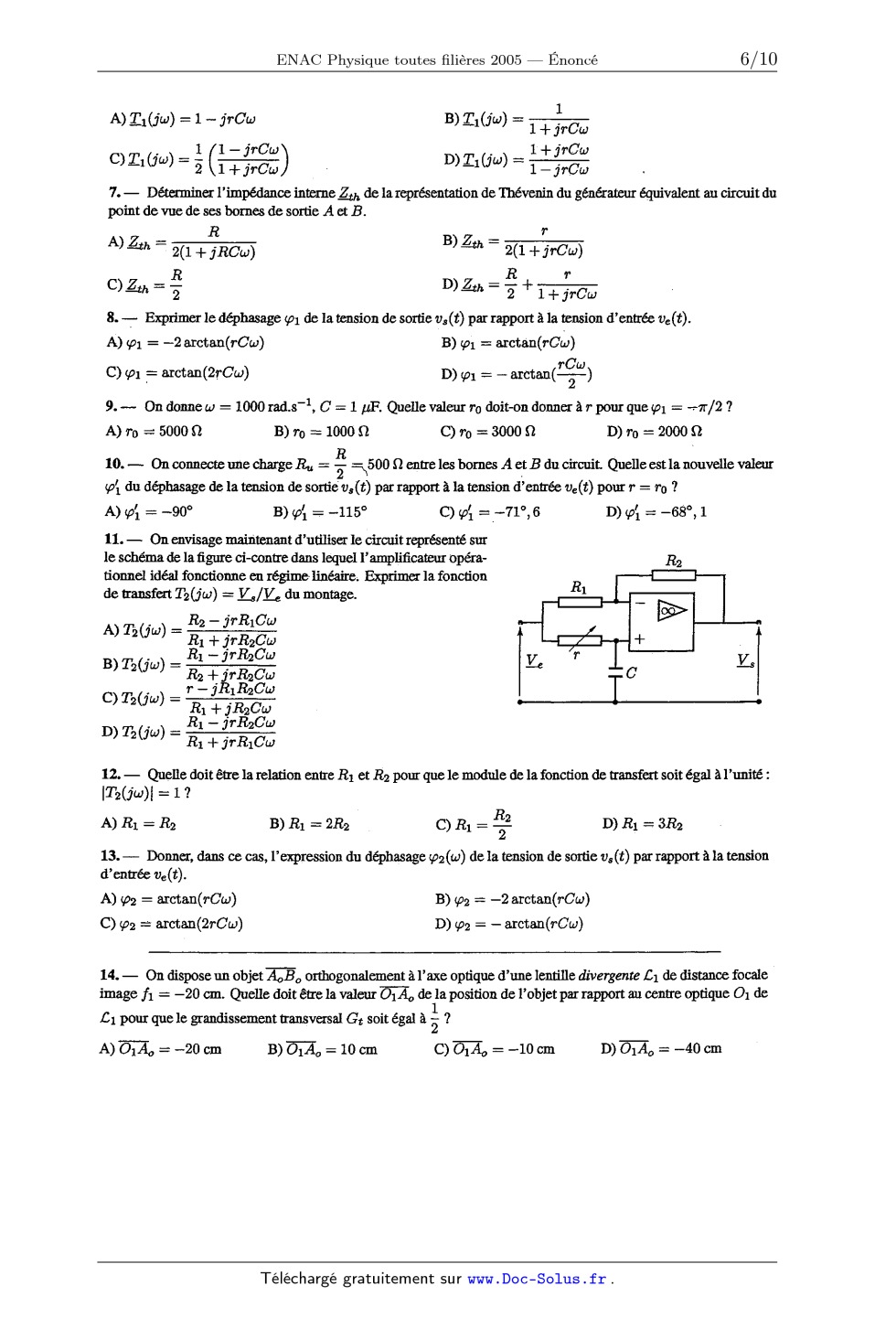 | Thème de l'épreuve | Mécanique, électrocinétique, optique géométrique, thermodynamique, électromagnétisme |